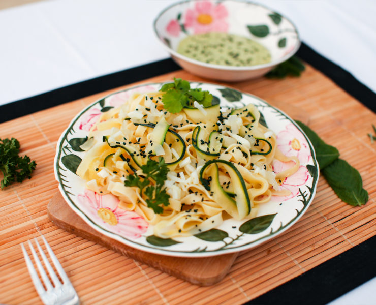 Ingrédients pour 4 personnes 300 g de pâtes, p. ex. tagliatelle 4 petites courgettes d’env.…